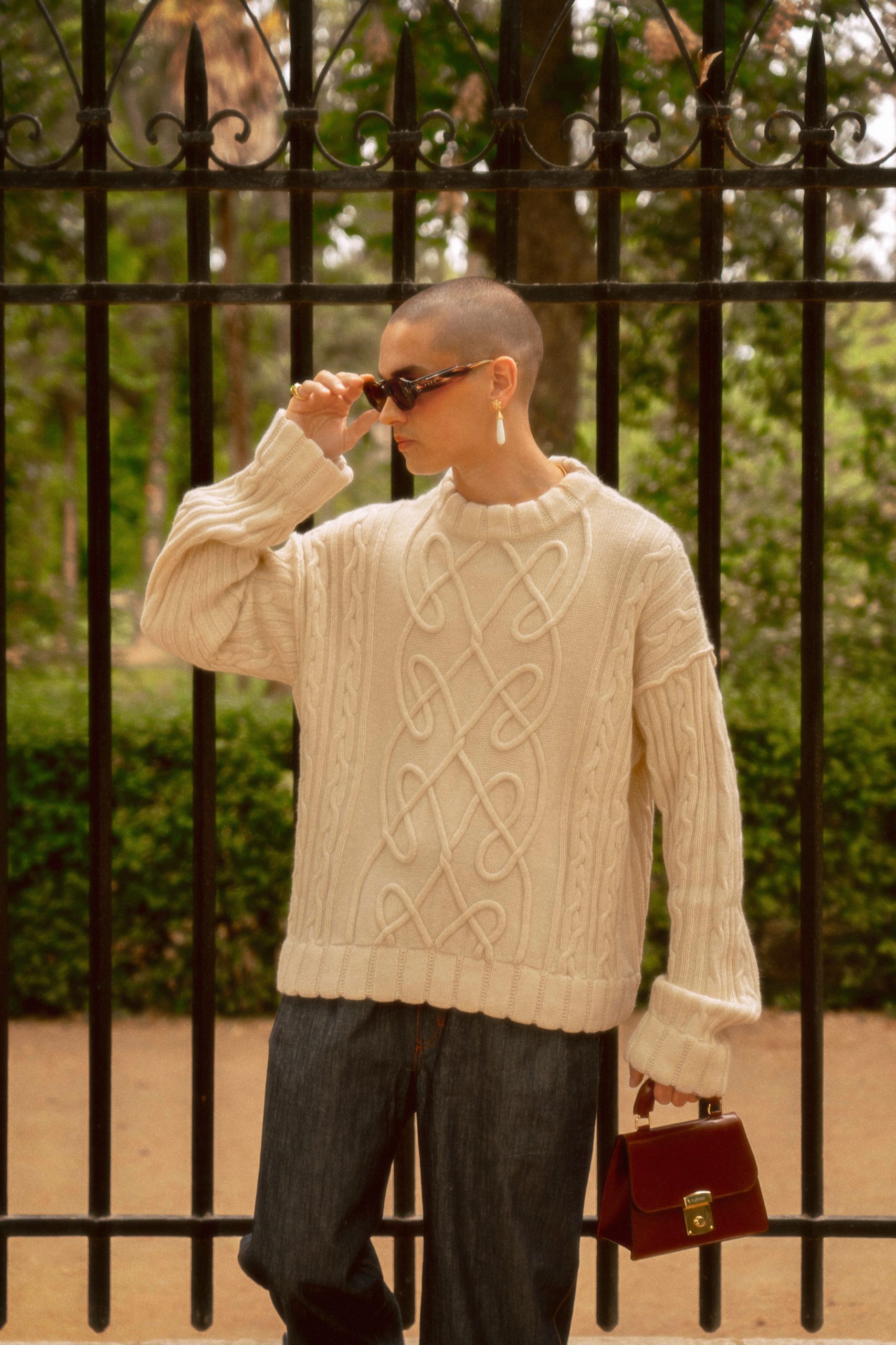 Esta pieza de algodón y lana de alpaca se inspira en los jerseys de estilo «old moeny»